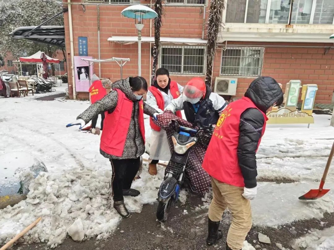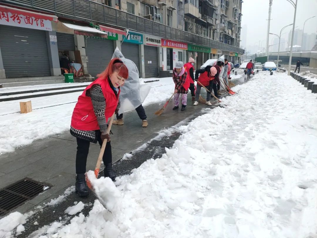 为确保雪天道路畅通,永丰街道汉沙社区号召辖区党员、志愿者、沿街商户开展扫雪除冰行动。