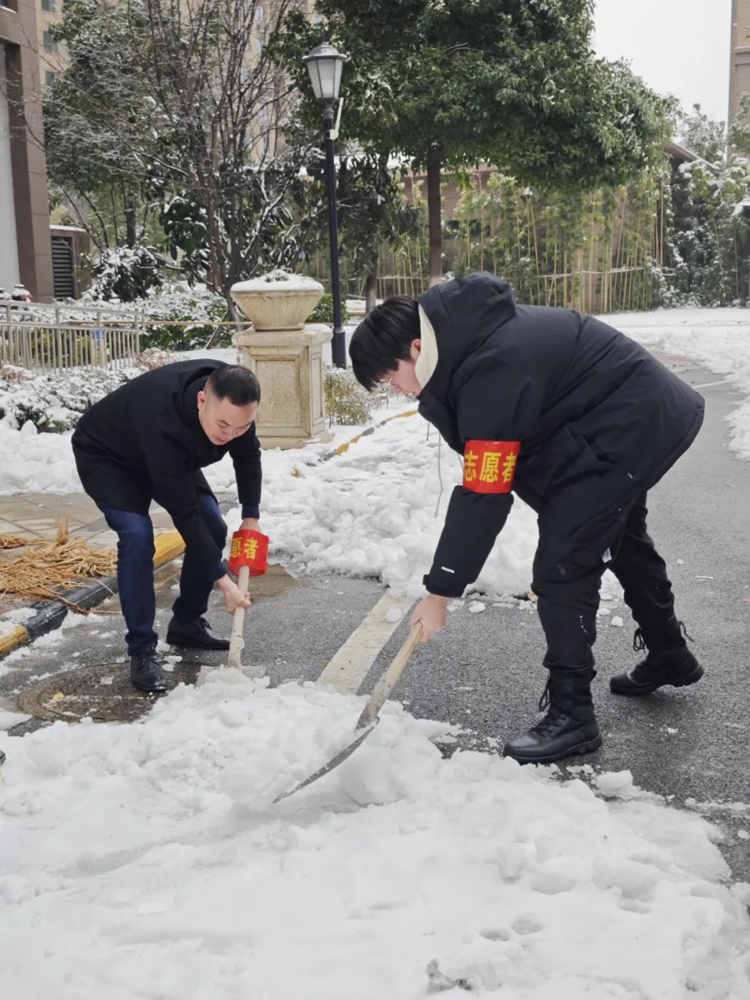 近日武汉连降大雪,杨茂新和大儿子杨庚辛作为志愿者,积极参与小区铲雪巡查工作。