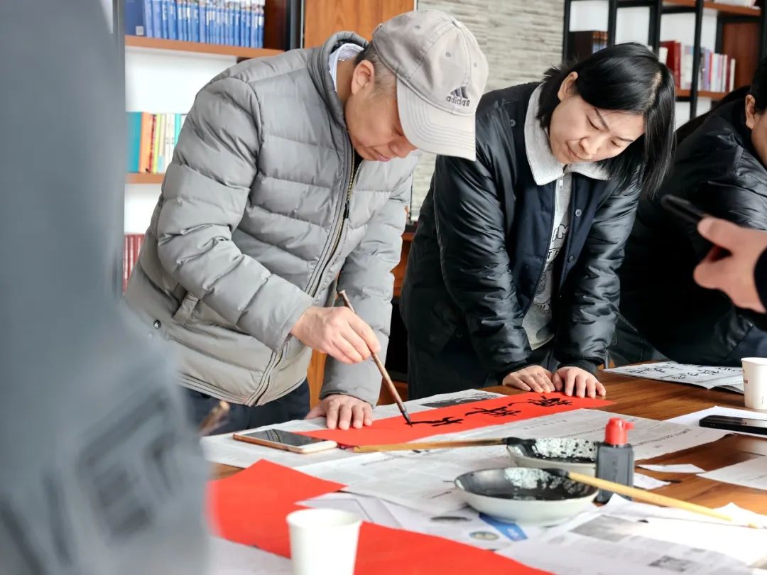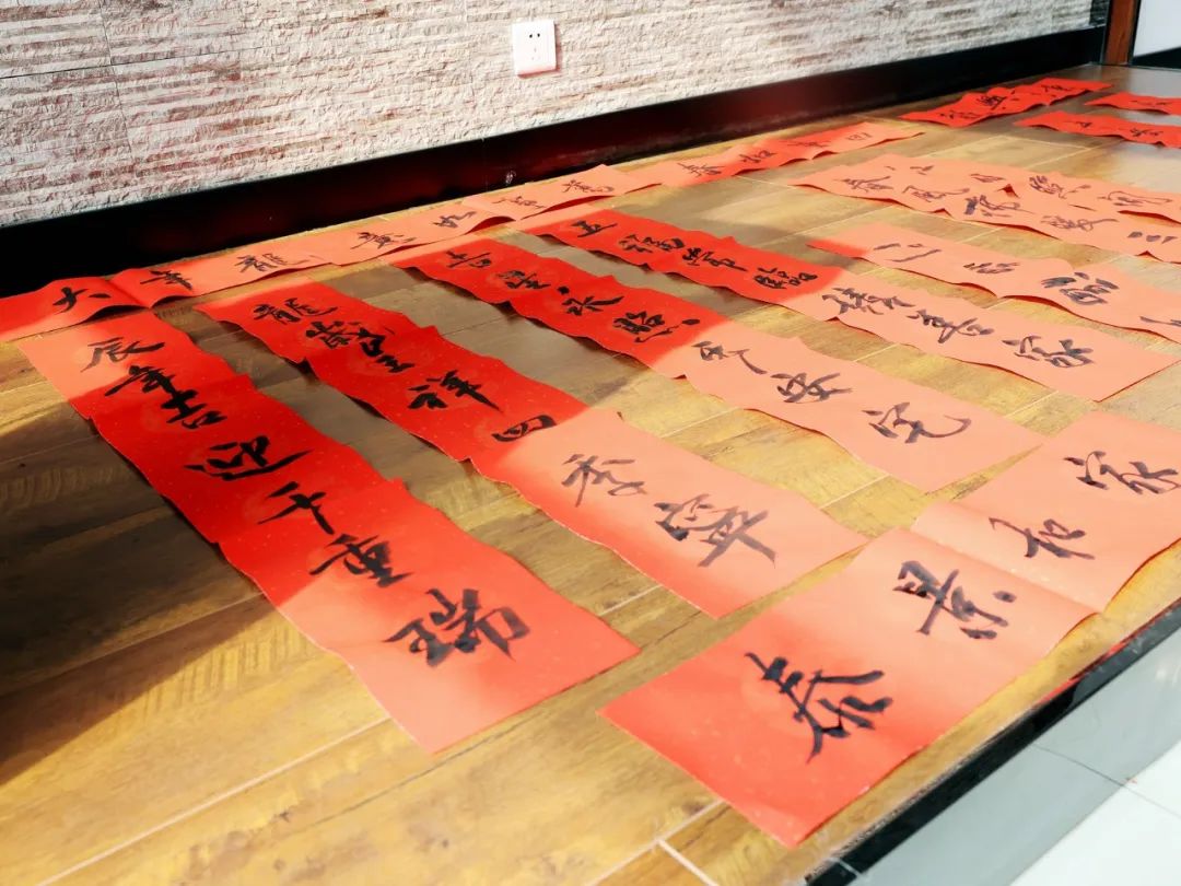 铺纸研墨,笔走龙蛇,泼墨挥毫,正楷、行楷等多种书体各显神韵,不一会,一幅幅平安和谐、吉祥如意的春联散发着清新墨香,呈现在人们眼前。带着对美好生活的期盼,大家一边品评春联寓意,一边欣赏书法艺术。翰墨的清香与众人的欢笑,让浓浓的年味和艺术气息在暖暖流淌。