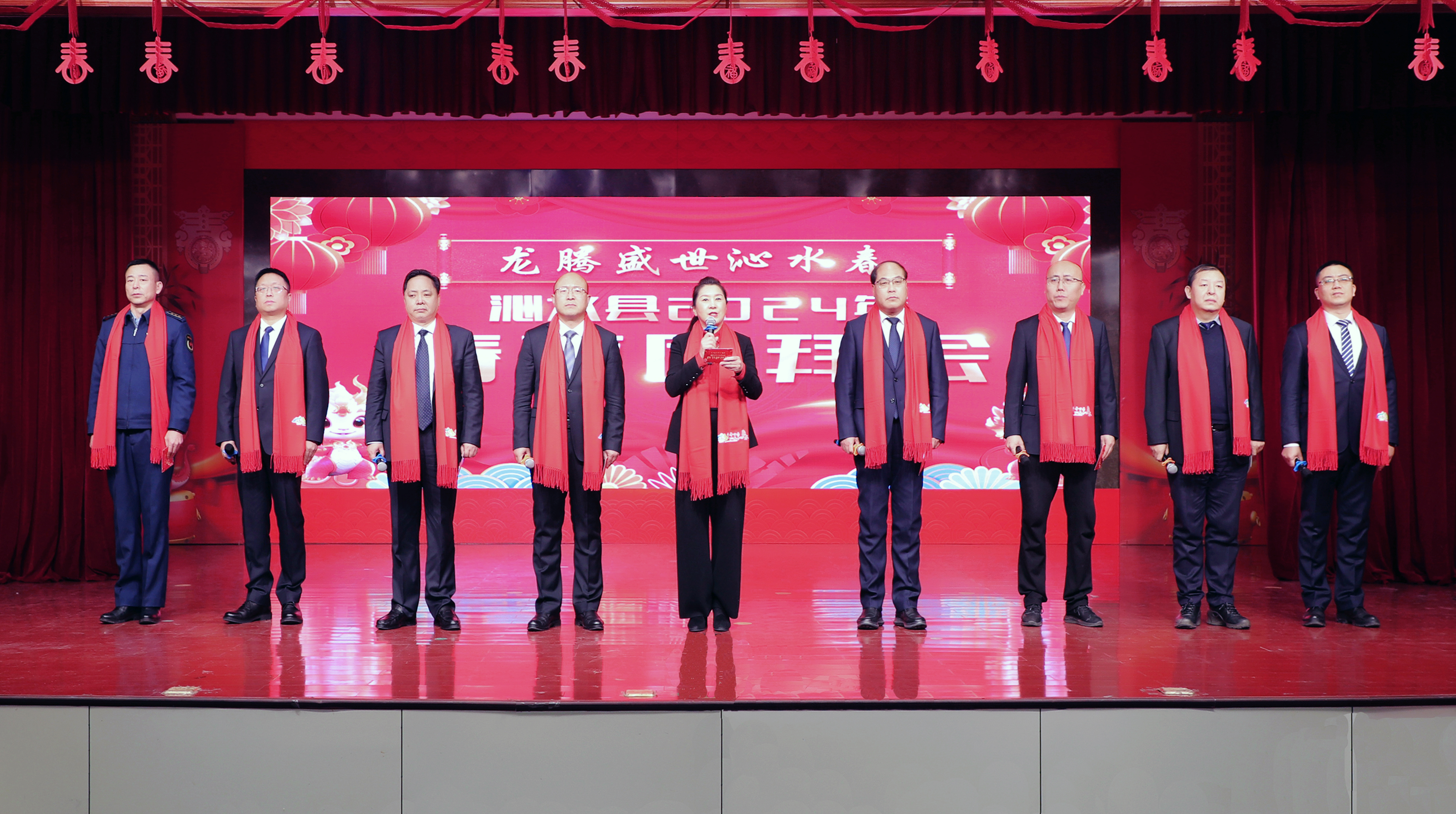 县委书记任彩虹发表新春致辞。县领导闫晋中、韩海亮、窦书瑾、张瑞忠、李永斌、宋吉文、闫立志、霍鹏、李小斌、李春、史永锋等出席团拜会。