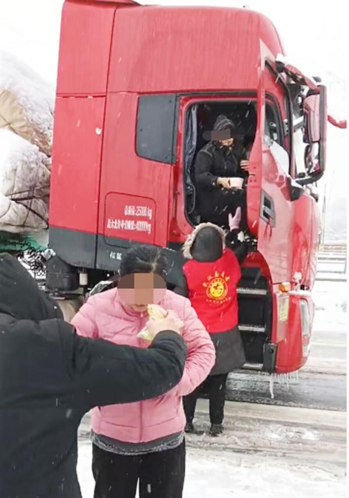 2月6日早上8时,武汉街头已是白茫茫的一片,卢变芝和几位兴达社区居民以及兴达社区工作人员,手上端着箱子、盒子,冒着风雪,沿着京港澳武汉北收费站补给路过滞留的司机。她们边走边敲车窗,给沿路司机递上包子、泡面、稀饭等。“他们想吃什么,我们就送什么,管够。”卢变芝说,因为货车的车窗较高,她们敲不到只能跳起来,有位社区工作人员给司机投递食物时,一不小心摔倒了。“但是听到司机们说收到东西很高兴,我们心里都觉得很暖,看着他们停在高速上我们也难受。”卢变芝说。