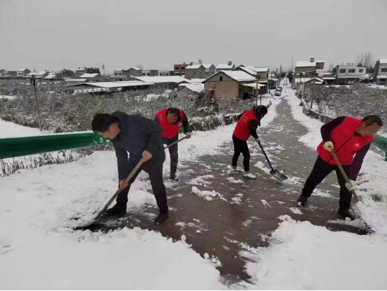 在清雪现场,镇基干民兵充分发挥敢打硬仗、能打胜仗的精神,用热火朝天的干劲投入到铲雪、除冰、破旧房屋清理等工作中,有效保障了村民的出行安全。