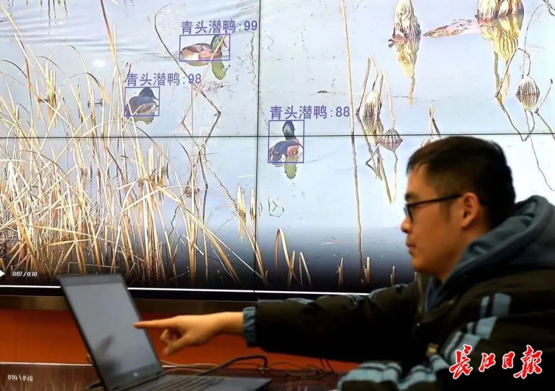 “这些鸟类和其他动物,只要进入我们的监控区,就能第一时间发现并向平台报告,由平台进行记录、统计。此外,它还能做到‘看图识鸟’和‘听声辨鸟’。”严岩打开平台,点击位于黄陂祁家湾的武汉第一个青头潜鸭栖息生境恢复示范点,只见画面清晰显示几只鸟儿在水面悠闲嬉戏。