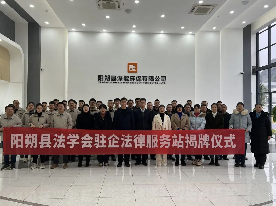 2月5日上午,我县在阳朔县深能环保有限公司办公楼一楼大厅举行法学会驻企法律服务站揭牌仪式。县委常委、政法委书记、县法学会会长邹茂东,阳朔县深能环保有限公司董事长王洋,相关单位负责人参加揭牌仪式。