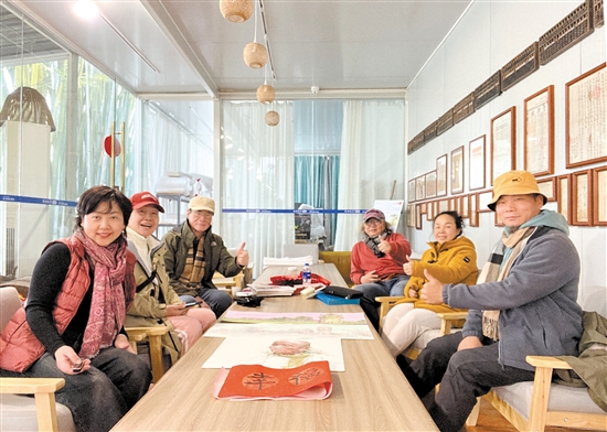 今年春节期间,我市旅游火热,住宿行业的生意也十分火爆。图为游客在侨乡故事民宿合影留念。