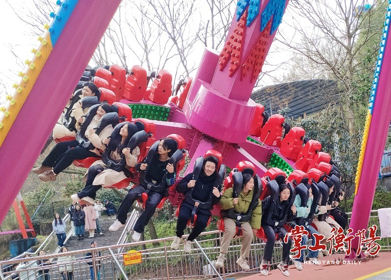 当日下午,春光和煦,微风拂面,记者看见不少市民来到岳屏公园散步休闲,“追”花寻春,乐享周末时光。公园东大门附近游道旁一棵贴梗海棠开花量已达70%,繁花压枝头,吸引不少市民游客和摄影爱好者前来赏花打卡拍照。“这片红色‘云彩’格外亮眼,我每年都领着儿子来这里拍照。”市民张女士在树下兜兜转转,选取最佳拍摄角度。九曲桥西头院坪内,白色的茶花粉嫩轻柔,花开满树,连片白花展现在市民游客面前。公园工作人员称,近期,春雨淅淅沥沥,天气阴冷,减缓了茶花盛放的步伐,目前,这棵茶花树开花量已达60%,随着气温攀升,茶花即将迎来盛花期。大摆锤游乐项目人气爆棚,随着摆锤在半空摇晃,欢笑声、尖叫声此起彼伏,游客体验拉升、俯冲的刺激快感,尽情享受快乐时光。岳屏公园管理处相关负责人介绍说,3月,公园将迎来最美的季节,玉兰、迎春、海棠、李花、樱花等春花将渐次开放,呈现春日的盛宴。园方将组织志愿者全力疏导客流,劝导不文明行为,让游客拥有更加美好的观花赏景体验。预计,3月3日、4日将迎来客流高潮。