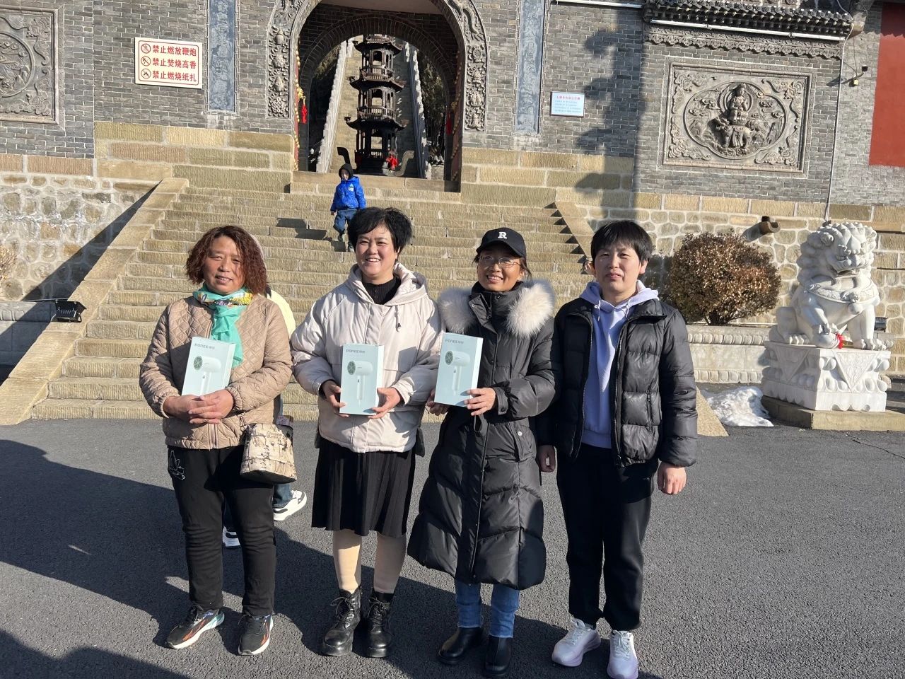 大家或三五成群地结伴而行,欣赏沿途的风景,或你追我赶向上攀登,享受登山的乐趣,巾帼风采与初春美景相互映衬。大约30分钟后,大家陆续到达终点,南李村村委会为大家颁发了奖品,并赠送了节日礼物。
