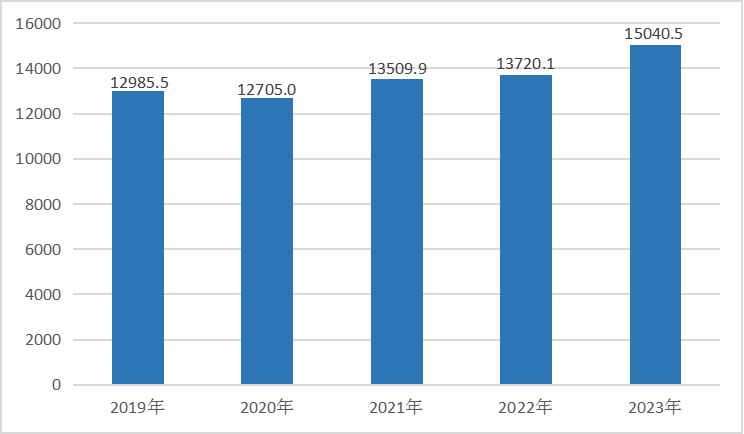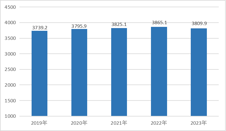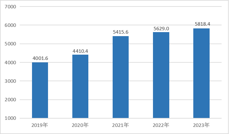 图5 2019-2023年全省社会消费品零售总额(亿元)
