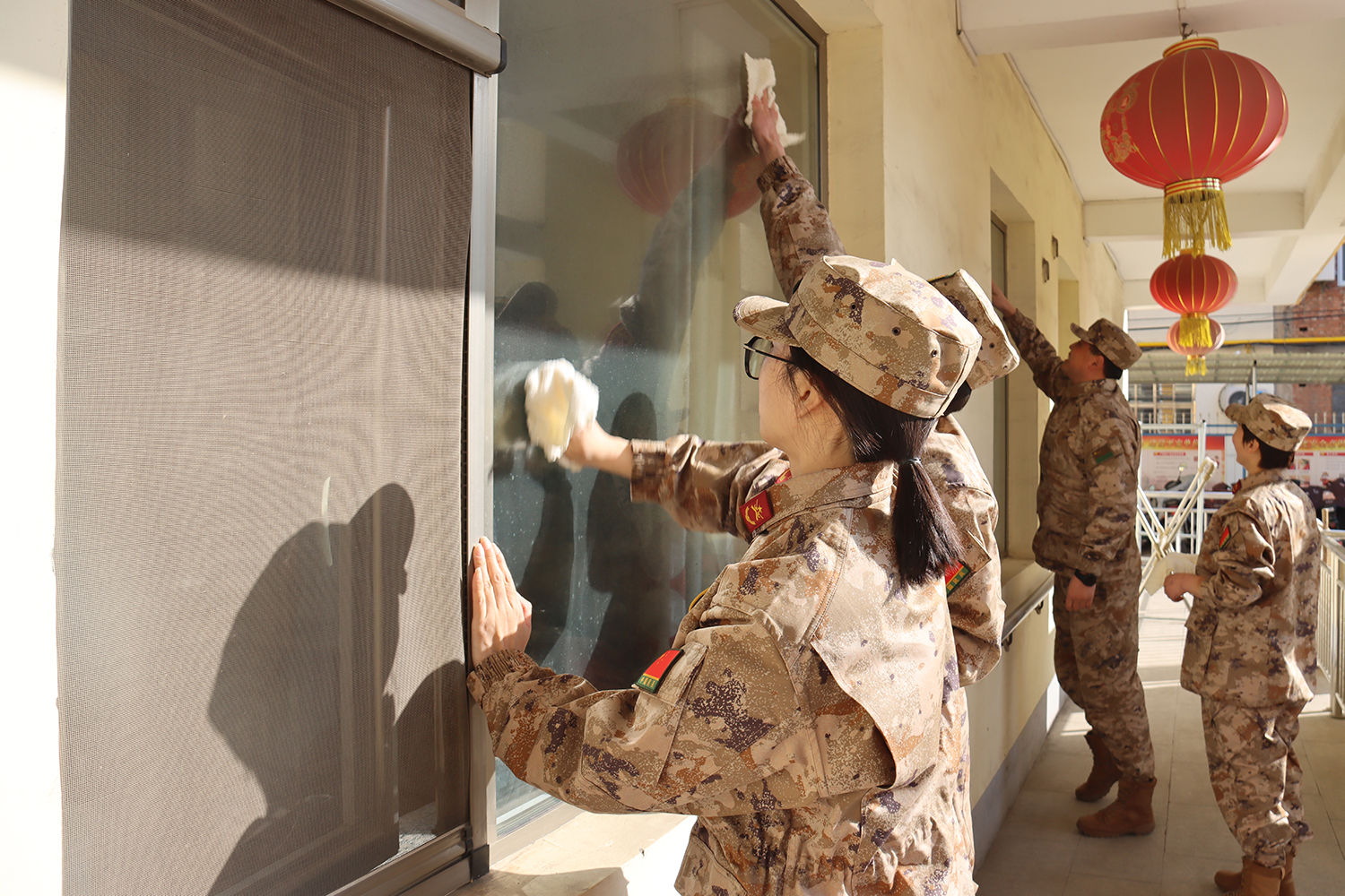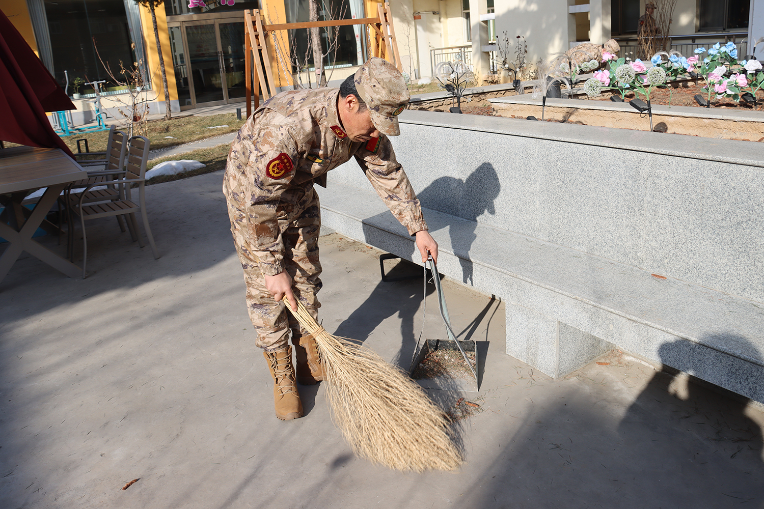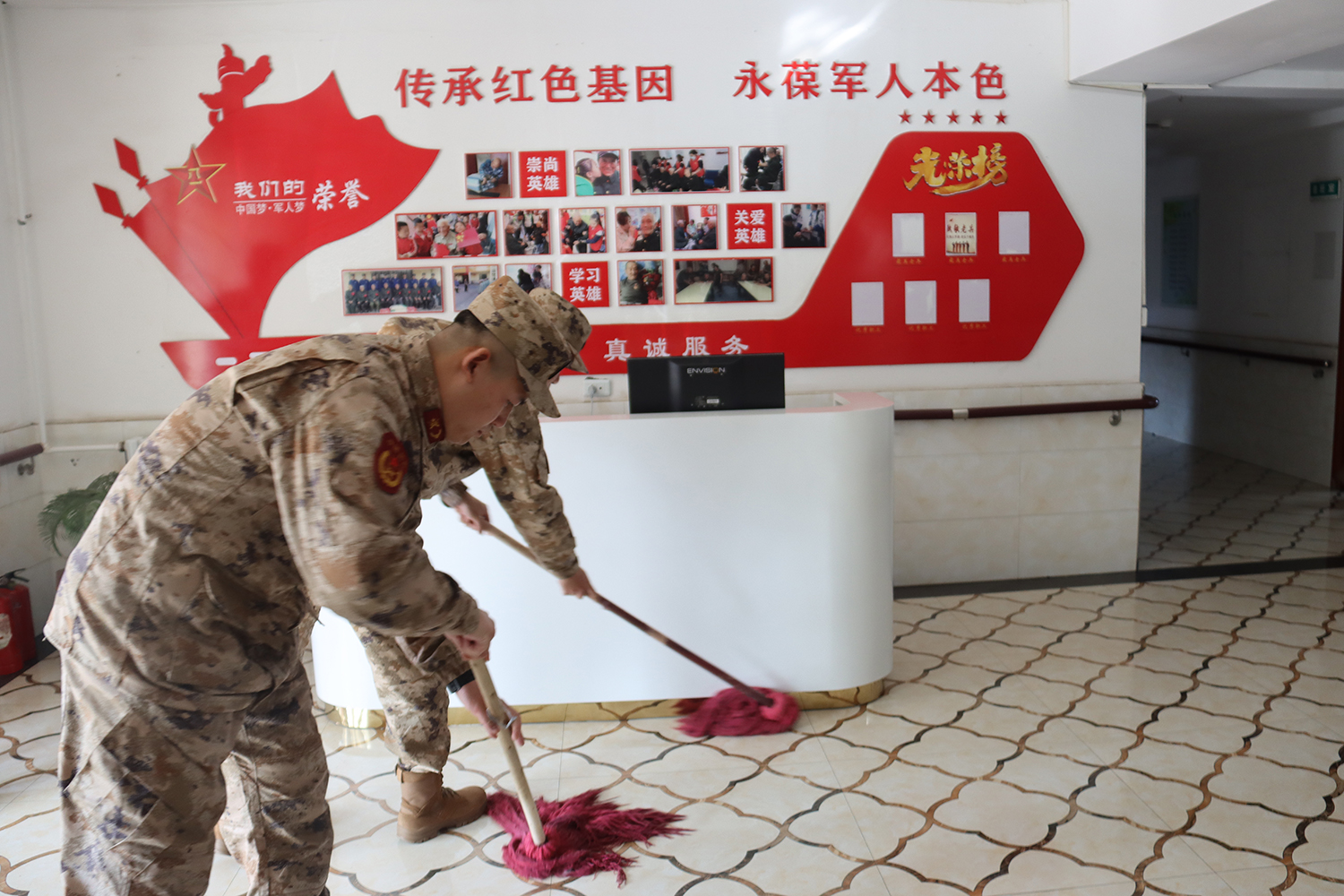 志愿者们一边和老人们唠家常,一边帮助打扫房间卫生、整理床铺被褥、擦拭窗户玻璃。一阵忙碌之后,光荣院内外环境焕然一新。新入职的文职人员纷纷表示要延续人民军队爱人民的优良传统,通过学雷锋活动拉近军民距离,营造军民团结的浓厚氛围。