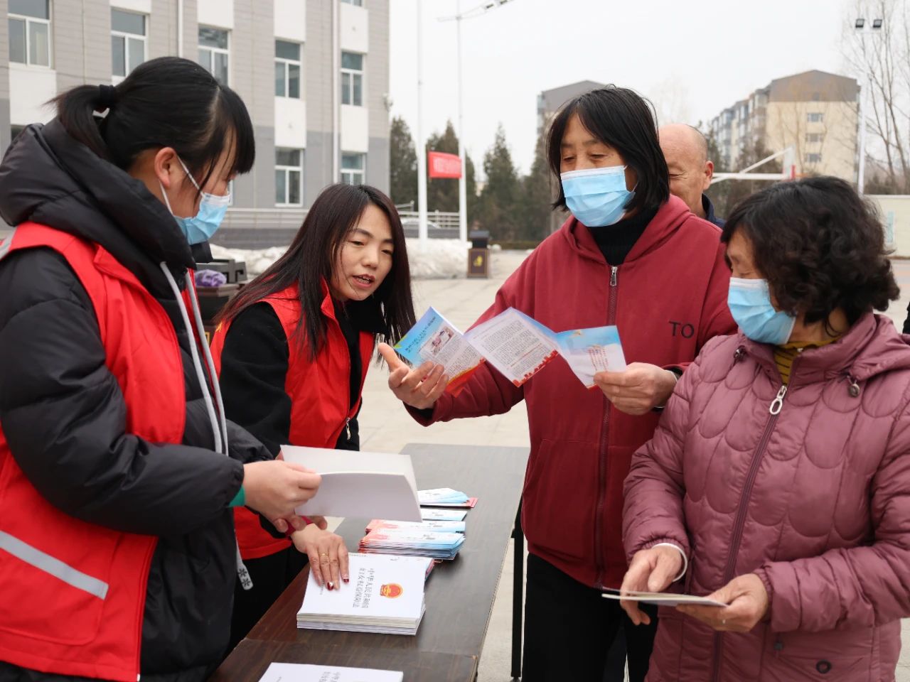 巾帼志愿者们集结在党群服务中心广场上,以亲切的态度、温暖的笑容、耐心的讲解为广大居民宣讲《中华人民共和国民法典》《中华人民共和国妇女权益保障法》《中华人民共和国反家庭暴力法》等法律知识,用通俗易懂的语言鼓励妇女善用法律武器维护自身合法权益。