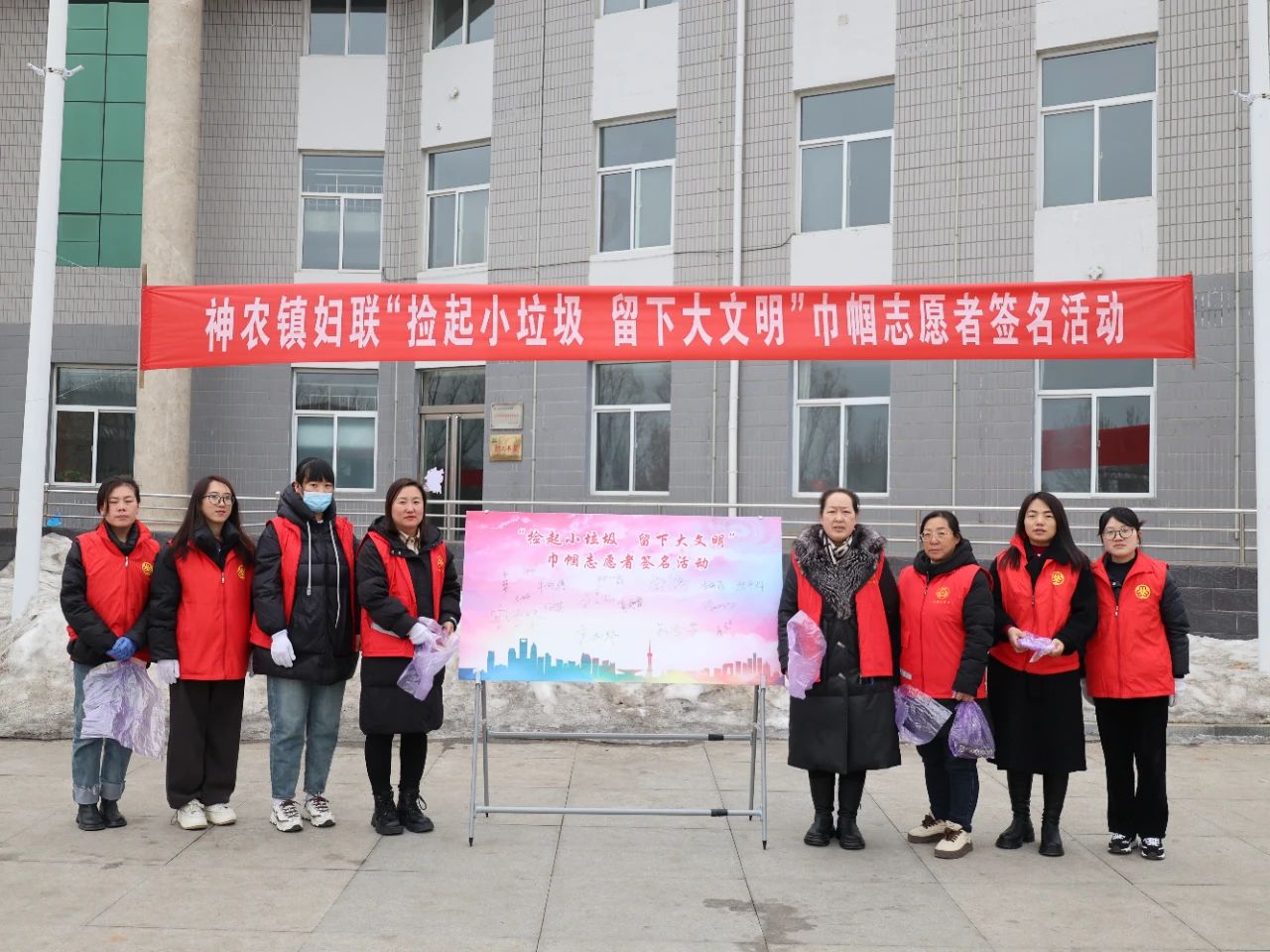 巾帼志愿者们不畏严寒,戴上手套,提上垃圾袋,到各村、神农东街、口袋公园等地捡拾小垃圾,并在党群服务中心广场上骄傲的留下了自己的名字,并表示一定要做大力普及环境保护知识的先锋,带动其他人不断提升环境保护的责任感和主动性。