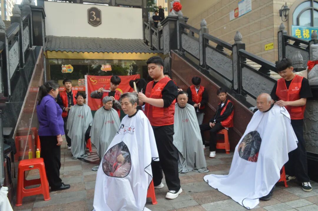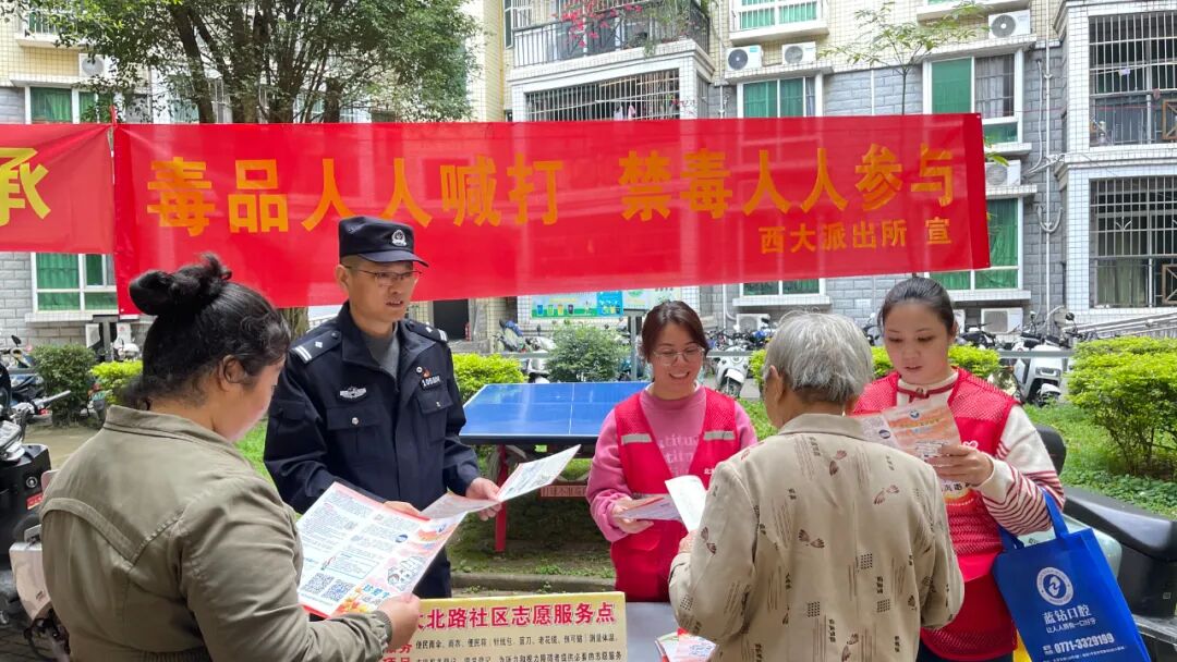 华强街道党工委联合西乡塘区教育工委等21家单位在华西茗城小区为群众送去志愿服务。