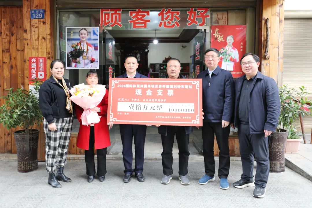 3月6日上午,区委书记刘浪,区委副书记、区长蒋炳炎看望慰问在德国科特布斯体操世界杯上,勇夺平衡木和自由操两枚金牌的南岳妹子周雅琴家属。