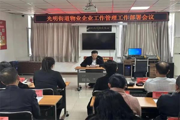 为进一步加强与物业企业的协调联动,规范辖区物业管理工作,帮助物业企业学习相关管理知识,增强安全意识,促进各项工作顺利开展,3月6日,光明街道开展物业企业安全生产工作部署会议。光明街道党工委副书记、办事处主任梁浩,武装部长刘丹丹,街道应急办、社区管理办工作人员,社区书记、副主任,各物业企业法人和物业经理参加会议。