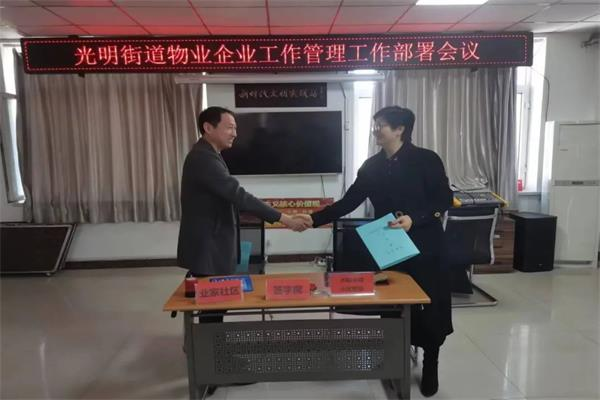 各社区与物业企业现场签订责任状,并建立光明街道物业企业工作群。