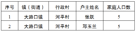 根据健全防止返贫动态监测和帮扶机制工作要求,经农户申请并承诺授权、村民评议、村内公示、乡(镇)审核和县级备案等程序,确定张跃等 2 户 10 人为监测对象。现向社会公告。