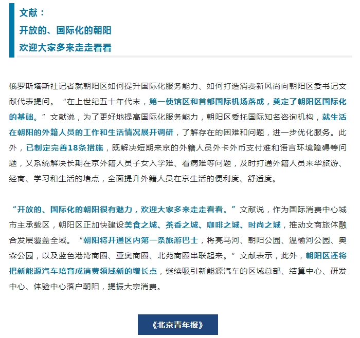 全国人大代表文献:开放的、国际化的北京朝阳欢迎大家多来走走看看