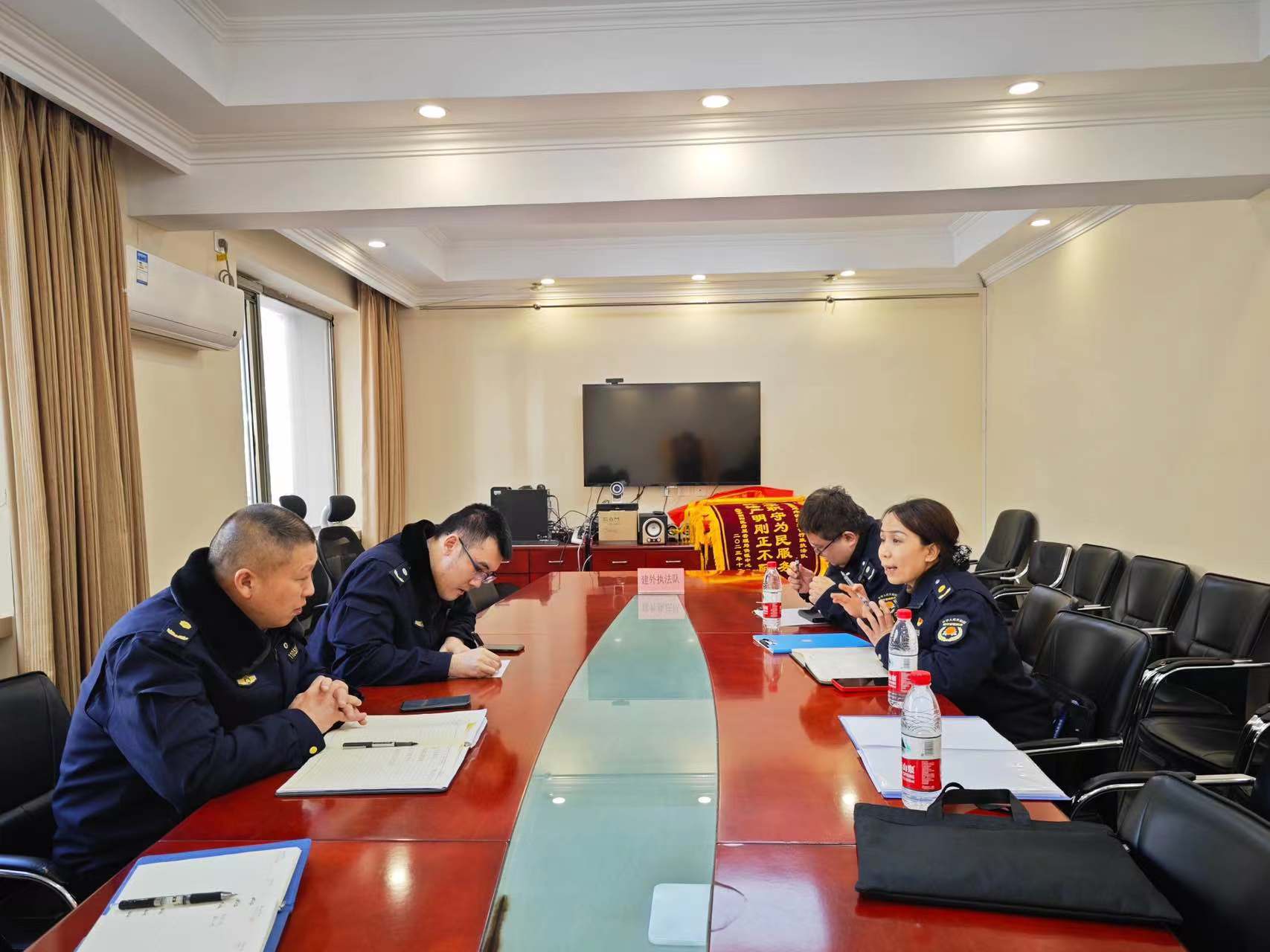 3月7日,局执法二队到建外执法队对接执法诉求比和千分制考核相关情况。(通讯员 执法二队 孙超)