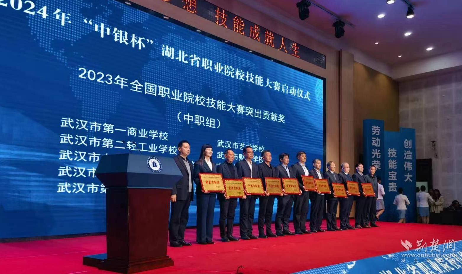 荆楚网(湖北日报网)讯(记者齐一璇、许文秀 通讯员张杨、戴立勇、黄文新)3月7日,2024年“中银杯”湖北省职业院校技能大赛启动仪式在武汉城市职业学院举行。会上表彰了近10年在全国职业院校技能大赛中获得突出成绩的20所院校。武汉市东西湖职业技术学校荣获“2023年全国职业院校技能大赛突出贡献奖”。该校党委书记张承胜、副校长高德胜参加活动。