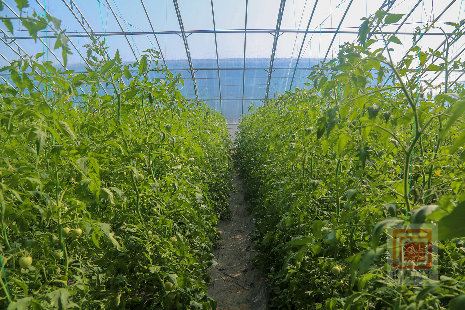 来到蔬菜园区,27座现代农业大棚坐落有序。走进大棚内,绿意盎然、生机勃发,西红柿秧苗长势喜人,绿油油的黄瓜缀满藤蔓,村民们分工协作,或给西红柿秧苗进行人工授粉,或进行固定打结,或施肥浇水,或采收黄瓜……大家干劲十足,忙春管、忙采收,盼着一年的好日子。