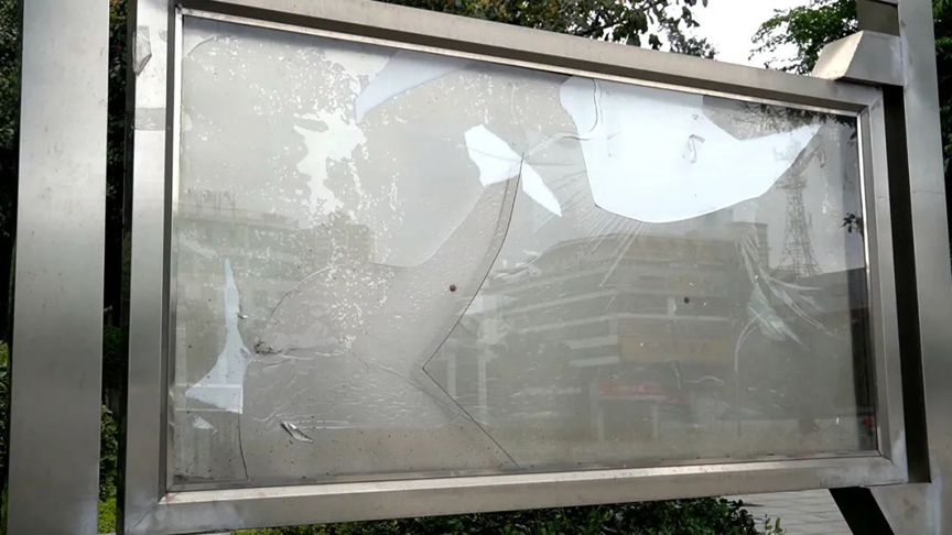 当天,记者先后来到县城北文化广场及行政中心广场,看到有部分宣传栏的防护玻璃遭到破坏,部分公共健身设施也有不同程度的损坏,已经影响到市民朋友的安全。景观小品上的一些字已被抠掉,不仅破坏了整体的美观,更影响了市容市貌。