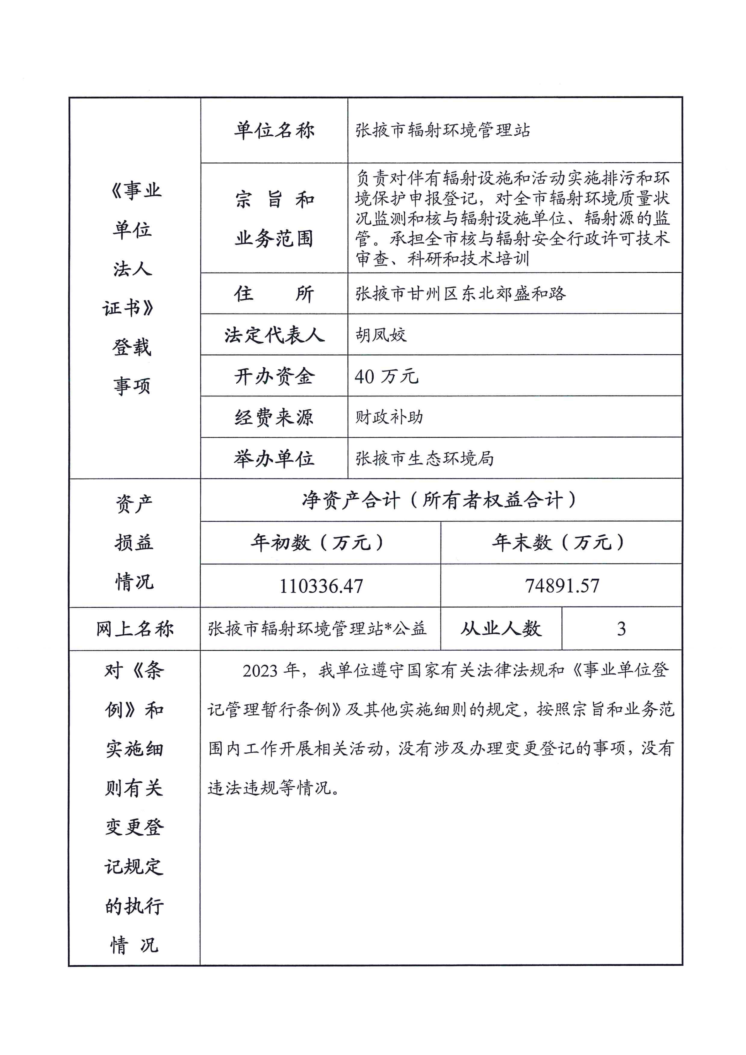 事业单位法人2023年度报告书(张掖市辐射环境管理站)
