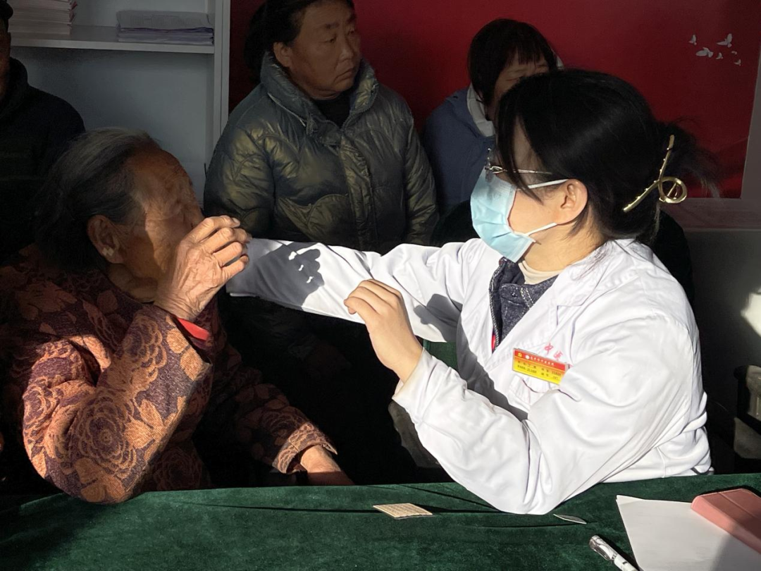 在米山镇酒务村,义诊的中医医师耐心细致地为每一位前来就诊的当地居民免费测量血压、血糖,接受问诊、分析病情,提供有针对性的中医诊疗方案。对慢性病患者普及中医健康教育知识,认真解答居民关于常见病、多发病的疑问,为居民提供耳穴压豆治疗。