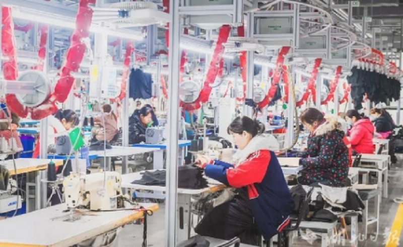 湖北鄂鱼美尚科技有限公司是鄂城区新引进的一家服装生产企业。所属行业很传统,但厂房内设备却很高端。 走进企业该生产车间,一件件休闲衣半成品吊挂在上空,由一组组轨道精准输送到相应工位,缝纫、整烫、质检,少人化流水线作业,科技感十足。 图片附件