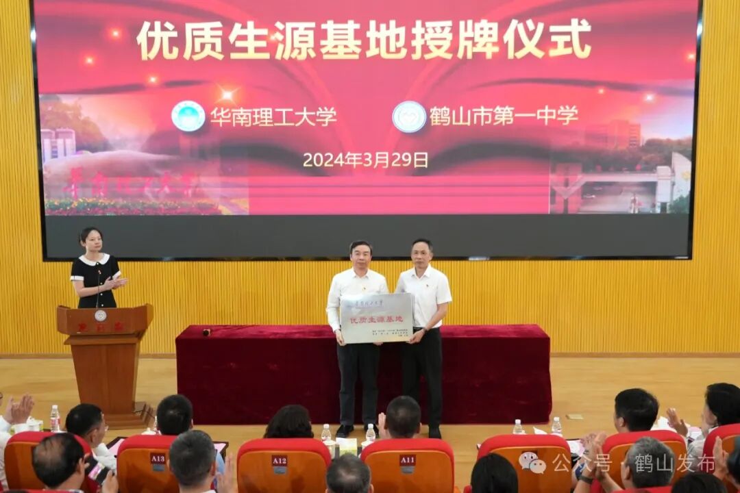 鹤山市委书记刘志刚表示,省教育厅、华南理工大学、广东实验中学到鹤山调研指导,安排省城名校结对帮扶,推动“华南理工大学优质生源基地”落户鹤山一中,是载入鹤山教育发展史上的一个里程碑事件,是60万鹤山人民的荣幸、更是近8万鹤山学子的福气。近两年来,鹤山坚持办好人民满意的教育,先后投入近6亿元,新建成了一中附小等一批学校和设施,并发动社会力量全资捐建新增3000个公办学位的源林初心小学,努力让鹤山的孩子不跨过西江也能得到优质的教育培养。希望与省城名校结对的鹤山中小学校、幼儿园抓住机遇、借梯登高,谦虚主动向名师名校学习,向着“管理一流、师资一流、质量一流”目标迈进。鹤山一中要珍惜“华南理工大学优质生源基地”平台,建成江门最好的高中、努力跻身省“第一方阵”。鹤山市委、市政府将始终坚持教育优先发展战略,积极创建国家义务教育优质均衡发展县,竭尽所能为帮扶学校在鹤山开展工作提供便利,全力推动“百千万工程”帮扶赋能教育高质量发展取得丰硕成果。