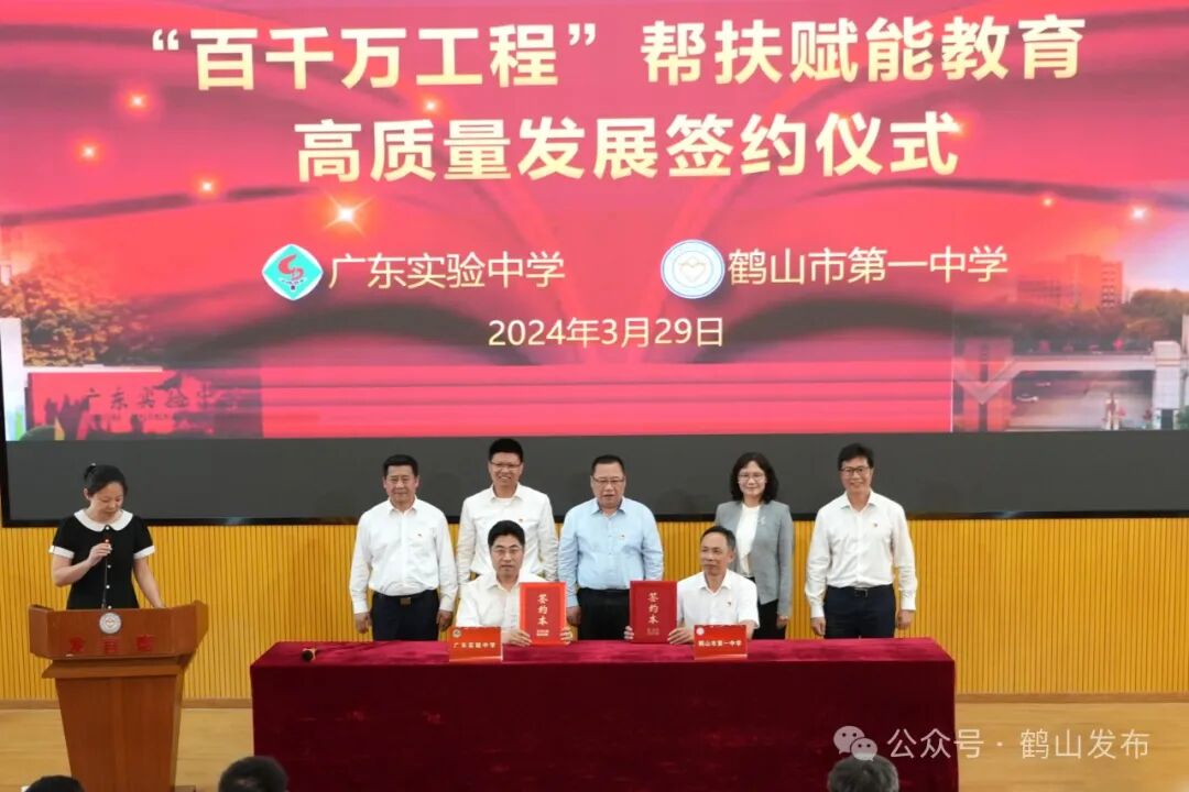 省城名校结对帮扶——“百千万工程”帮扶赋能鹤山教育高质量发展签约仪式在鹤山一中举行