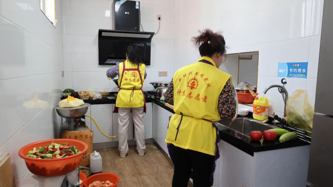 上午9时许,口则村的日间照料中心就已经忙碌了起来,村委成员、网格员、志愿者为寿星们准备丰盛的“生日宴”。切菜、腌肉、调料汁、蒸甜饭……这些常规的生日宴流程,大家已经非常熟悉了。与往常不同的是,这次生日宴还有来自高平市国学文化促进会的志愿者们,为本次活动增添了别样的文艺风采。