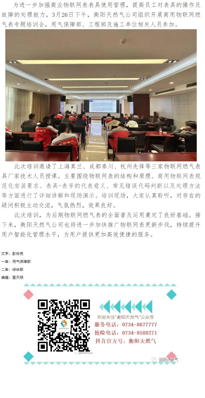 衡阳天然气公司组织开展商用物联网 燃气表培训