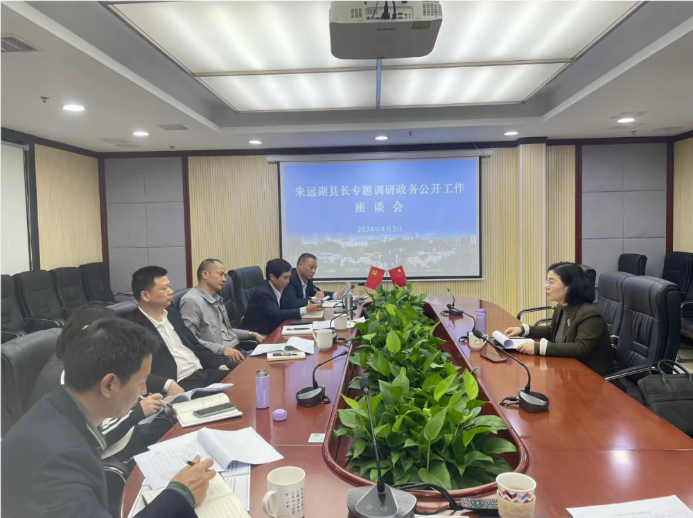 4月3日,副县长朱远到县行政审批服务局组织召开座谈会,专题调研政务公开工作,县行政审批服务局全体班子成员和相关股室成员参加会议。