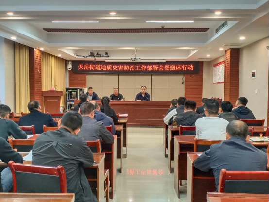 加强组织领导,明确责任分工。迅速召开街村两级地质灾害防治工作布置会,制定下发《天岳街道2024年度地质灾害防治及应急预案》,落实落细地质灾害防治工作及“搬床行动”,严格落实网格化巡查机制,强化值班值守,将责任层层分解,落实到人,形成横向到边、纵向到底、联防联控的工作格局。