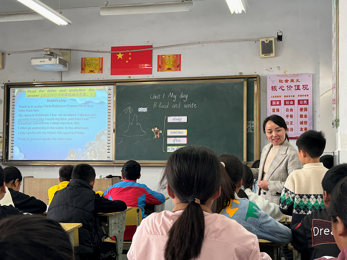 陕西省教学能手、汉中市东塔小学英语学科刘婷婷老师执教五年级下册《Unit1PartBReadandwrite》。刘老师认真践行小学英语学习活动观,注重学生学科素养的培养,采用歌曲、抢答单词、角色扮演等学习活动,激发学生学习兴趣。同时巧妙链接英语、语文、思政、艺术等学科的融合点,体现新课标跨学科教学理念,让老师们耳目一新。