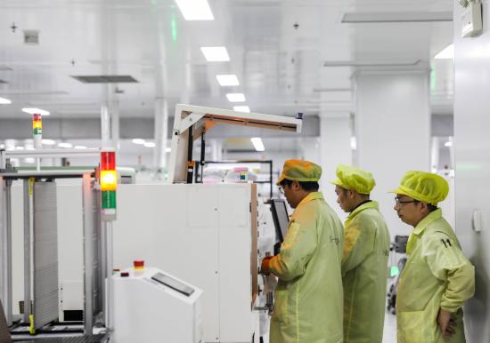 4月12日,大足区智能制造龙头企业——重庆盛泰光电科技股份公司明亮整洁的无尘车间内,工人身穿防尘服,正在生产一亿像素的摄像模组。近年来,大足区瞄准光学材料和整机领域,大力发展光电产业,引进盛泰光电、佳禾光电等企业,持续补链、强链、延链,着力打造光电产业集群,摄像头模组出货量位居全球第5。