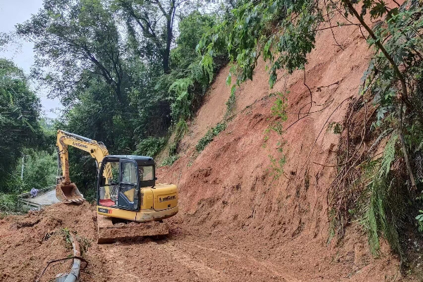 (使用挖掘机清理九曲坑塌方路段)