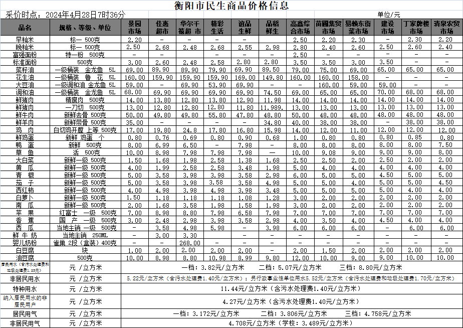 【物价】 2024-4-28衡阳市民生价格信息