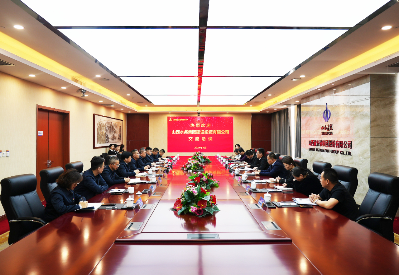 近日,山西水务集团建设投资有限公司总经理郭真一行到集团座谈交流,集团总经理任锐热情接洽。