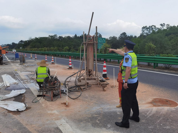 自治区交通运输综合行政执法局第六支队第三大队检查辖区养护施工点。