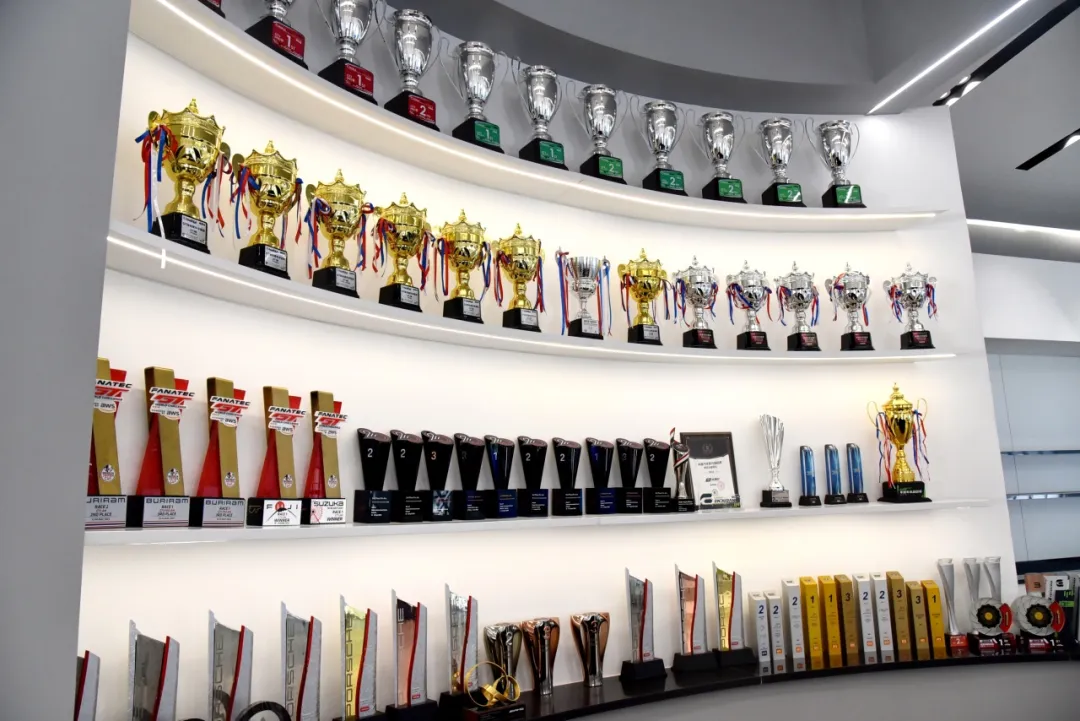 走进上海极点赛车运动发展有限公司,荣誉墙上琳琅满目的奖杯映入眼帘,其中包括中国汽车耐力锦标赛GT3、GT4组车队年度冠军,PCCA亚洲保时捷卡雷拉杯年度车队冠军,以及GTSSC短程冲刺赛GT3车队年度冠军等显赫荣誉。这些奖杯见证了车队从创立至今的辉煌历程。
