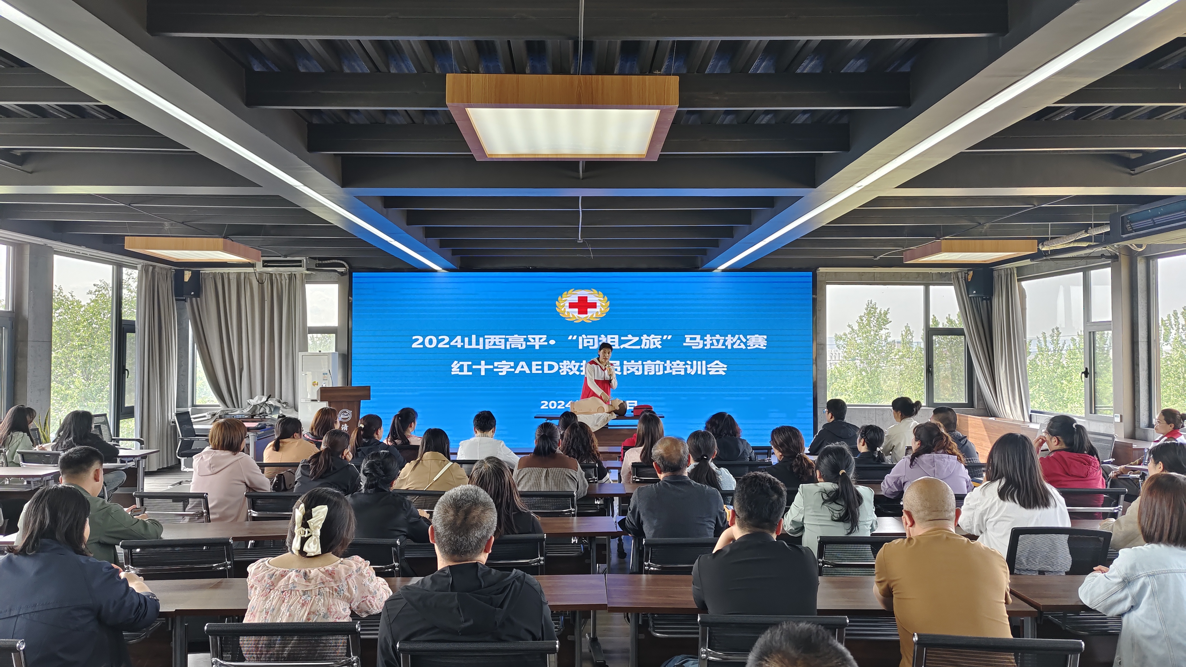 4月30日,我市红十字会对90名马拉松救护员进行岗前培训。