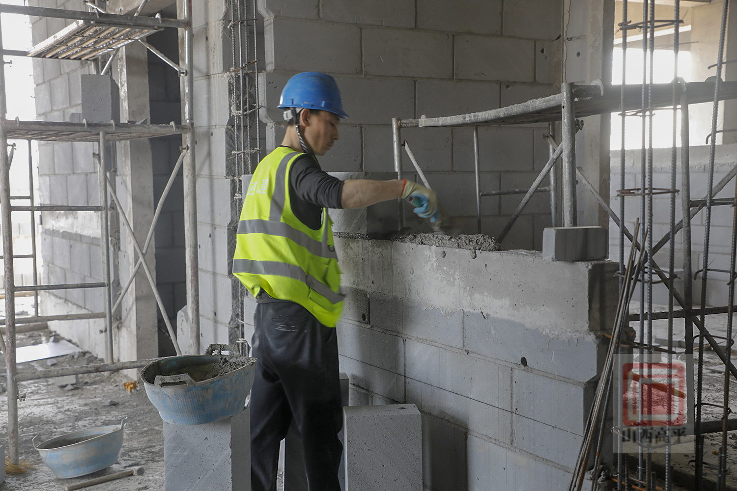 来到项目施工现场,机器轰鸣,奋战正酣。60余名工人师傅忙碌奋战在各自的岗位上,加紧进行墙体砌筑、消防设施、给排水、通风、空调安装等作业,呈现出一派大干快上的火热景象。“为加快项目建设进度,我们项目部工作人员放弃休假,把‘黄金周’变成‘攻坚周’,强化安全管理,细化目标任务,全力以赴推进项目建设,确保工程按照既定时间节点顺利推进。”该项目副经理张学斌介绍说。