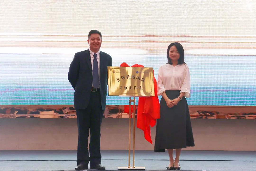 市卫生健康委党委书记、主任胡莹洁与张剑教授共同为“张剑教授团队专家工作室”揭牌