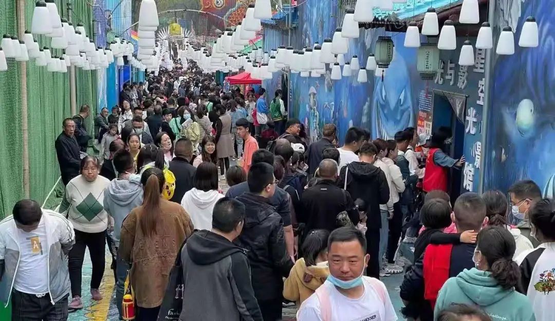 “五一”假期寻梦小镇景区各个场馆游人如织,处处洋溢着浓浓的节日氛围,上百场国潮风表演深受游客好评。与此同时,景区精心培育的旅游新业态、新产品也成为了假日旅游经济的重要增长点。景区打造的“斜屋”“倒置屋”“暴富屋”等体验项目,吸引了众多游客前来游玩。