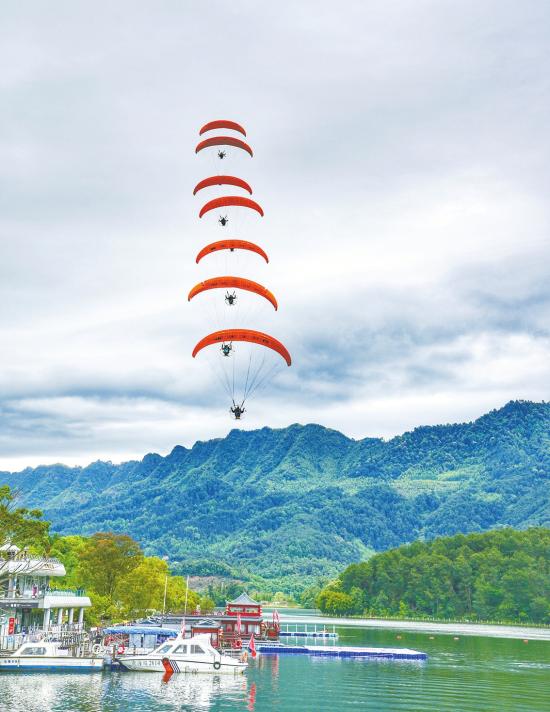 精彩的动力伞飞行表演 新渝报记者龚果摄