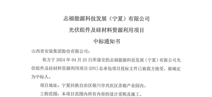 春风拂绿,喜讯相迎。近日,集团协同华东区域总部中标战略客户海锋集团-志福能源科技发展(宁夏)有限公司光伏组件及硅材料资源利用EPC总承包项目。