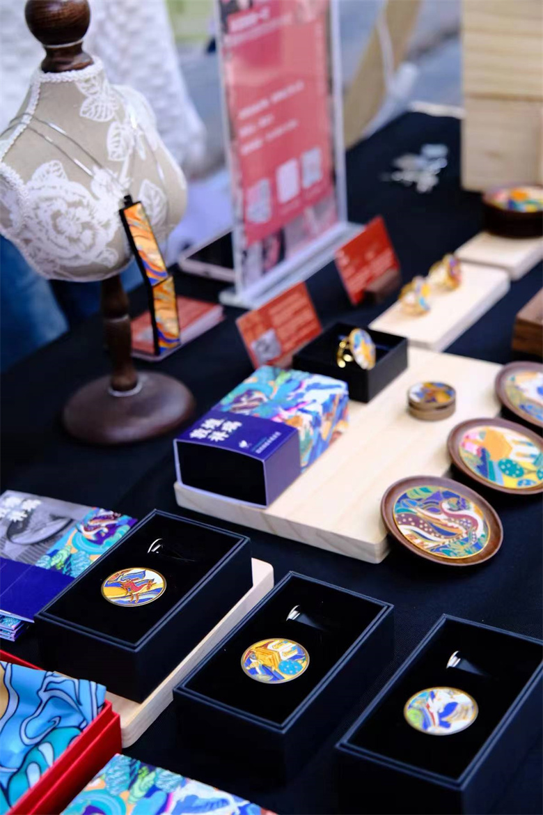 此次非遗活动市集共有来自全国各地的50多家工坊参与,高台县非遗工坊展位上色彩明艳的掐丝珐琅茶盘杯垫系列、掐丝珐琅竹炭盘、车载香薰以及古法绳编手链系列等非遗文创产品,均以河西走廊浓郁的丝路文化元素和独特的丹霞地貌为原型,以传统非遗掐丝、岩画、古法绳编技艺为载体进行创新研发。西北特色鲜明的丝路非遗文创赢得了众多外宾和各国羽毛球运动员的喜爱和青睐。