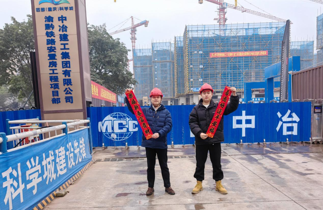 2024年春节,杨涵(左)和魏学义坚守项目现场。