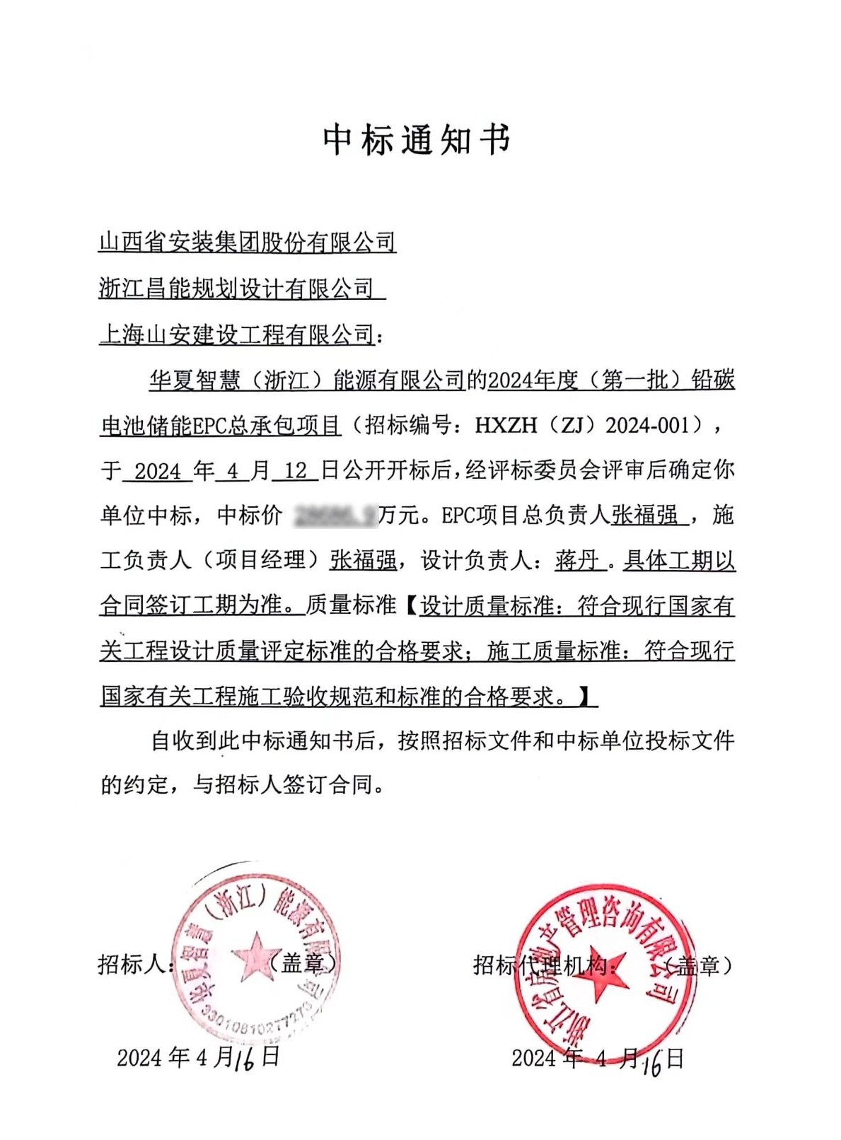 集团中标2024年度(第一批)铅碳电池储能EPC总承包项目